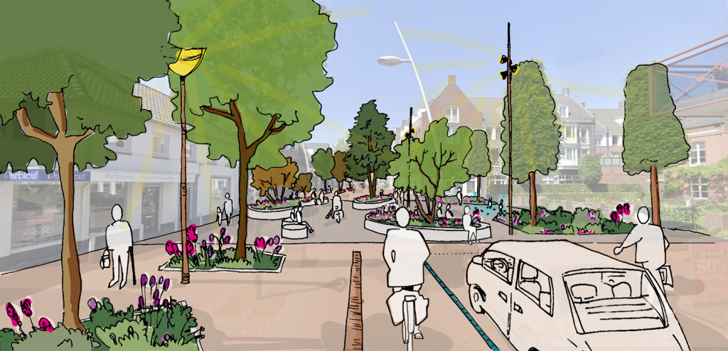 - Het vergroenen van het centrum, zodat het gebied aantrekkelijker en beter toegankelijk wordt en hittestress en wateroverlast afnemen.