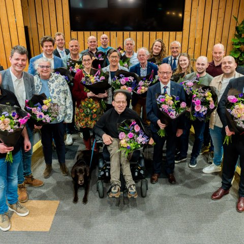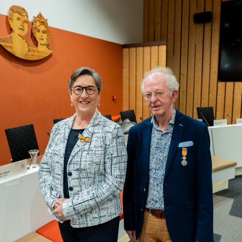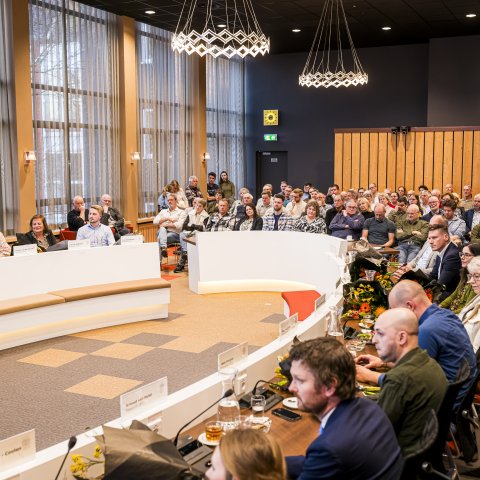 Voor ieder van de tien scheidende raadsleden heeft de burgemeester mooie woorden, met af en toe een kwinkslag. Vier van hen krijgen nog wat extra aandacht, omdat ze twaalf jaar of nog langer raadslid zijn geweest. Zo werd Hans van Munster (VHP) al in 2006 burgerlid en was hij sinds 2014 “een stille maar betrokken kracht op wiens kennis en expertise werd vertrouwd”, aldus de burgemeester. Van Munsters partijgenote Helma Claassen zal volgens de burgermeester herinnerd worden vanwege “haar grote sociale hart en haar fijnzinnige gevoel voor taal.” Beiden ontvangen voor hun grote verdiensten een koninklijke onderscheiding.