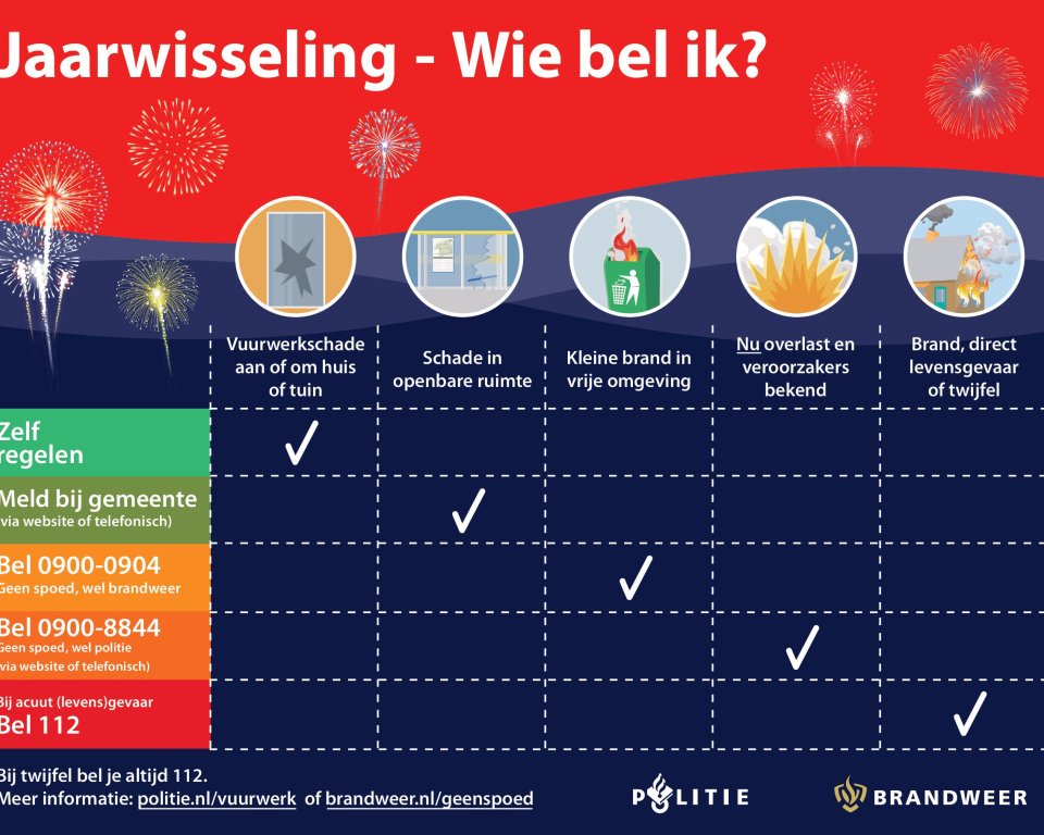 Om de jaarwisseling veilig en leuk te houden, vragen we iedereen verantwoordelijkheid te nemen. Let op de volgende punten: